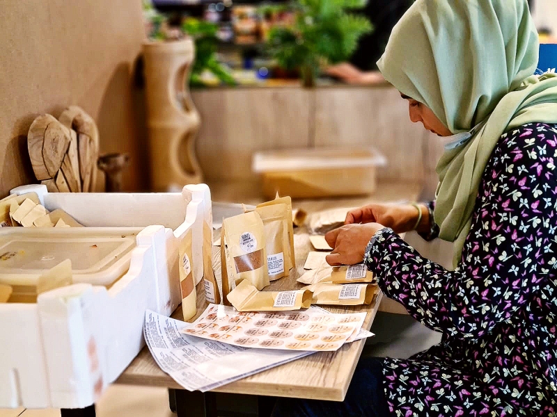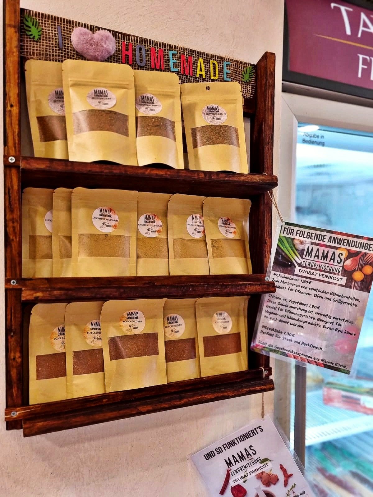 Tayibat Feinkost's hauseigene Gewürzmischungen zum Verkauf.