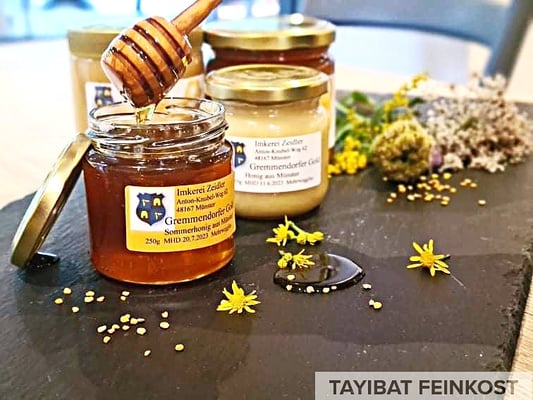 Ein reines unverfälschtes Naturprodukt! Bei uns bekommt ihr festen und flüssigen Honig aus unserem Ortsteil Gremmendorf. Die Imkerei Zeidler (600 Meter Luftline) beliefert uns ständig mit frischem Honig. Diesen Honig verwenden wir auch für unsere Saucen.